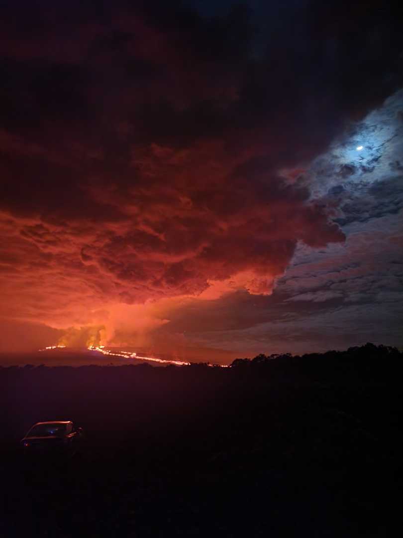 Mauna Loa—the largest subaerial volcano in the world (making up roughly 51% of Big Island’s landmass)—had been rumbling recently, and turns out those rumblings were no bluff. The eruption began in Moku‘aweoweo, the caldera atop Mauna Loa, and shifted to the northeast rift zone. The lava drooled 12 miles down the mountain and shopped less than 2 miles from the highway that goes between Mauna Loa and Mauna Kea.