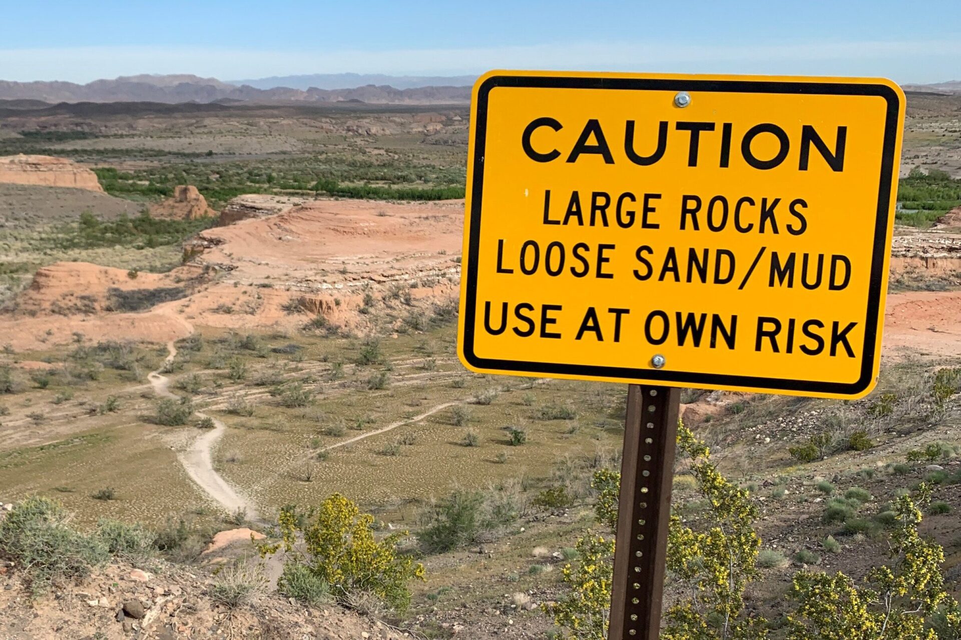 Think of this as Railroad Trail with extra seasoning. Push past the tunnels and drop into Gold Strike Canyon. You ride a rocky, layered desert slide straight into a narrow, photogenic slot canyon–and if it’s rained a bit, a mini waterfall pops up. It’s a subtle step up in effort, but the payoff? Serious canyon cred.