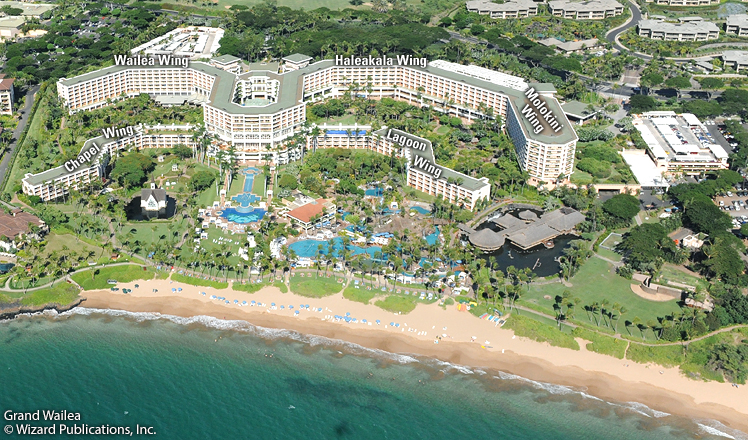 Words that describe this place are: wow, huge, awesome, overwhelming, crowded, fun. Grand Wailea is indeed one of the largest resorts on Maui. They took every dream and whim that the designers could come up with and sprinkled in a half billion dollars or so (give or take a hundred million—I mean, who’s counting when it gets that high?). The result is an outrageous, exotic tropical playground.