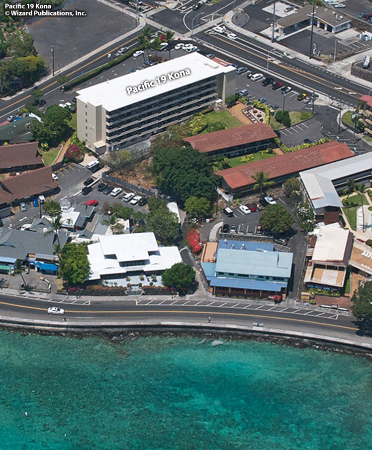 Pacific 19 Kona sits in the heart of Kailua-Kona and was part of the former Kona Seaside Hotel located across the street from Kailua Bay. It reopened in 2023 after it closed for long-awaited renovations. The buildings were built over time several decades ago, but only the tower remains as part of the new hotel.